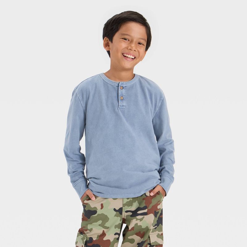 This Long-Sleeve Henley T-Shirt from Cat & Jack™ brings classic style to your child's wardrobe. Crafted from shrink-resistant cotton fabric, this long-sleeve T-shirt brings cool comfort to their day. …