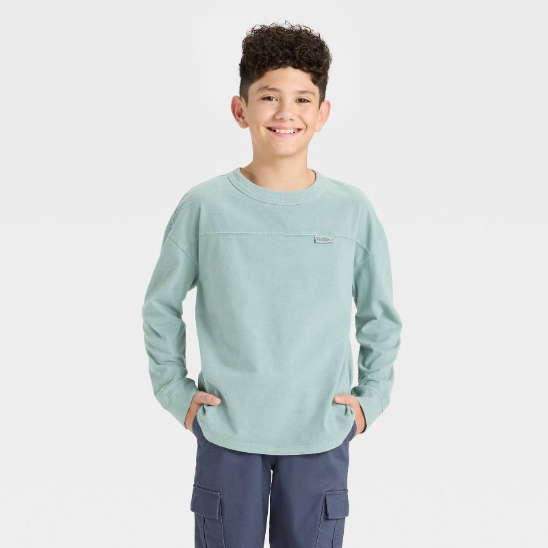 Keep your child's everyday look simple and comfy with this Long-Sleeve Relaxed-Fit Patch T-Shirt from Cat & Jack™. This shrink-resistant tee is crafted from midweight cotton jersey fabric for breathab…