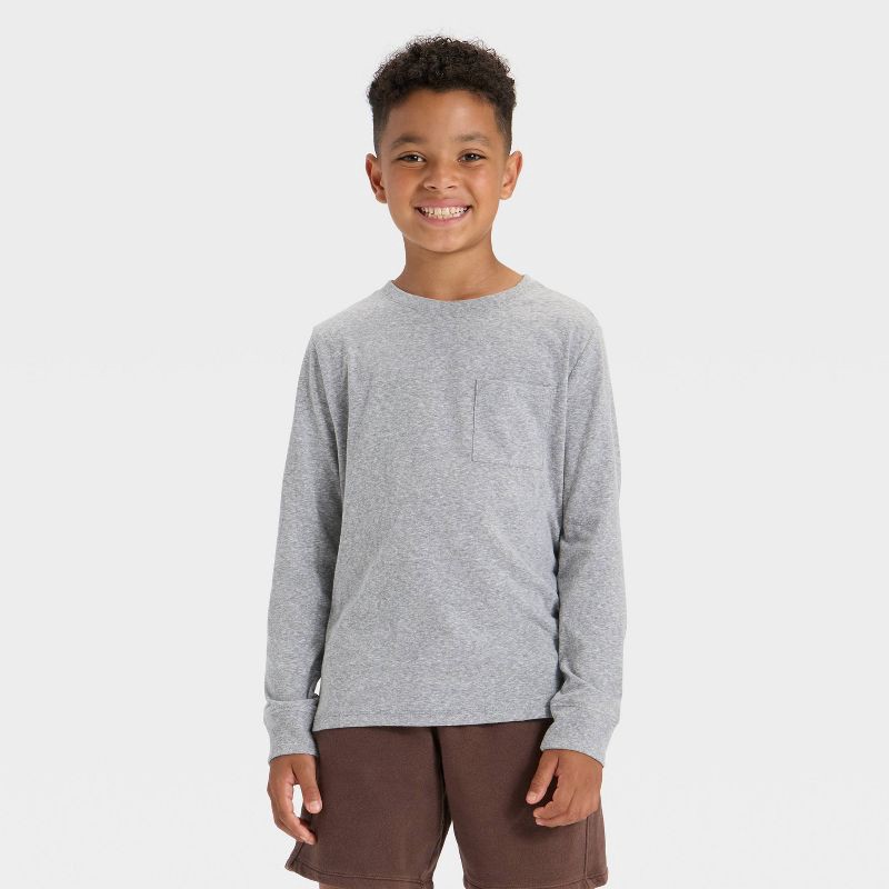 Boys' Long Sleeve T-Shirt - Cat & Jack™ Light Gray L
