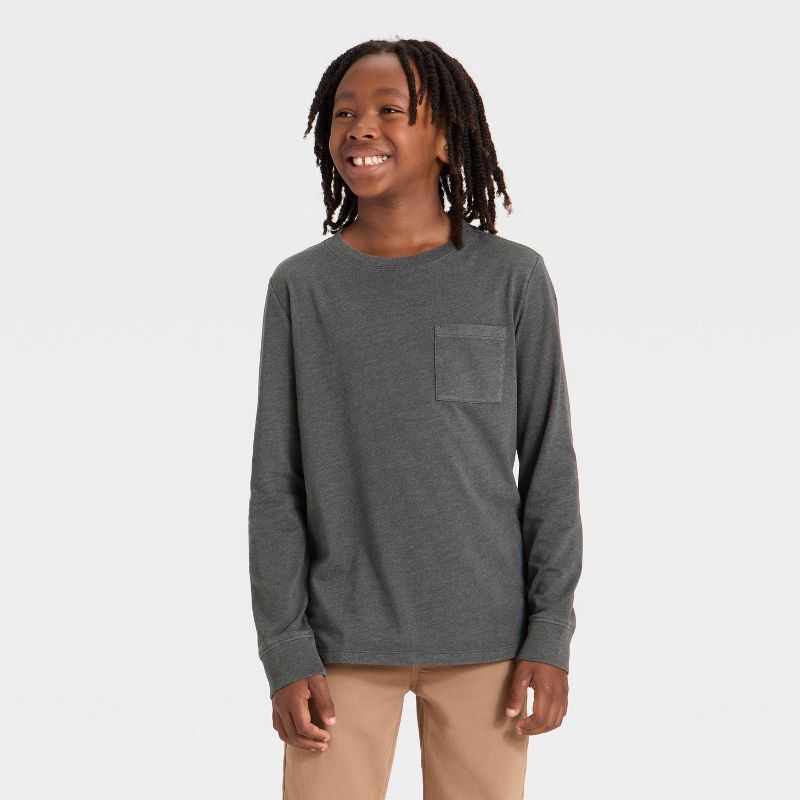 Boys' Long Sleeve Washed Pocket T-Shirt - Cat & Jack™ Black XS