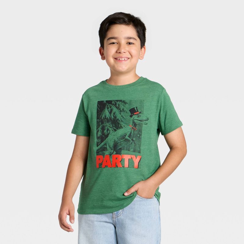 Your child will love getting ready for exciting times in this Short-Sleeve Dino Party Graphic T-Shirt from Cat & Jack™. Made from cotton-recycled polyester blend jersey fabric, this short-sleeve T-shi…