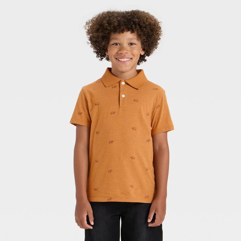 slide 2 of 3, Boys' Short Sleeve Printed Polo Shirt - Cat & Jack™ Orange L, 1 ct