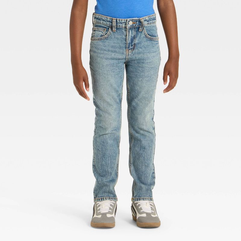 They will love to dress in these Slim Fit Jeans from Cat & Jack™. Made from 100% cotton-spandex blend fabric, these mid-rise jeans offer all-day stretchy comfort. These denim jeans feature an adjustab…