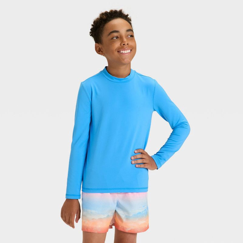 For swimming in the neighborhood pool to chilling on the beach, your child will love staying comfortable under the sun in this Long-Sleeve Solid Rash Guard Top from Cat & Jack™. This long-sleeve rash …