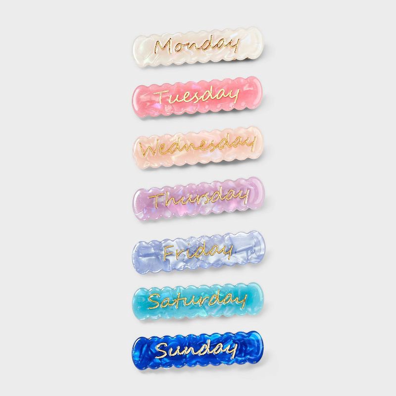 Create a fantastic look with a different hairstyle daily with the 7-Count of Days of the Week Hair Clips from Cat & Jack™. This hair clip set is suitable for all hair types and is designed in assorted…