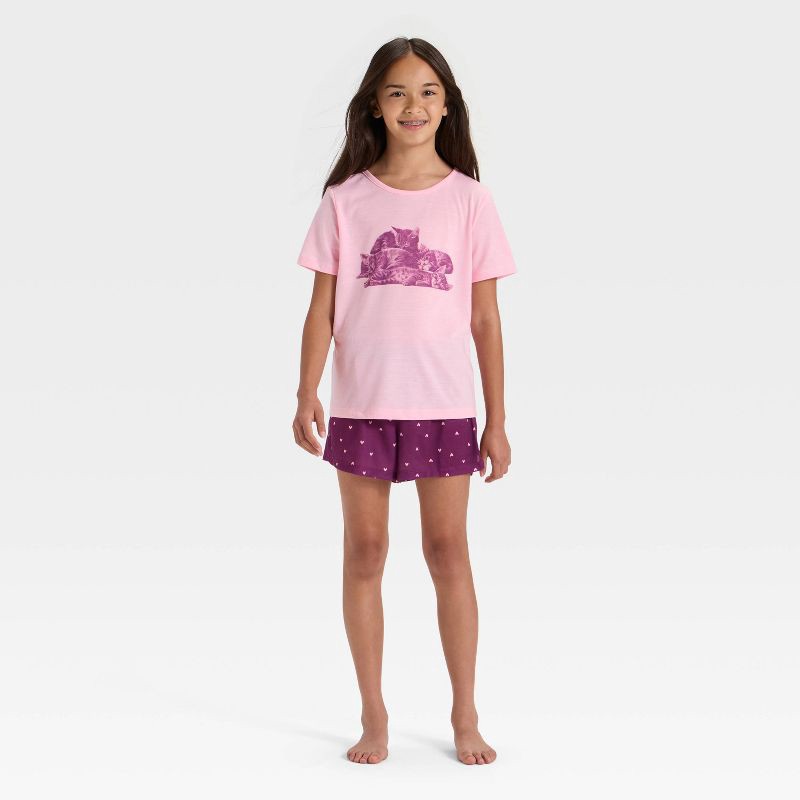 They will stay comfortable throughout the night with this 2-Piece Short-Sleeve Pajama Set from Cat & Jack™. Crafted from recycled polyester jersey fabric for comfortable wear, this pajama set is perfe…