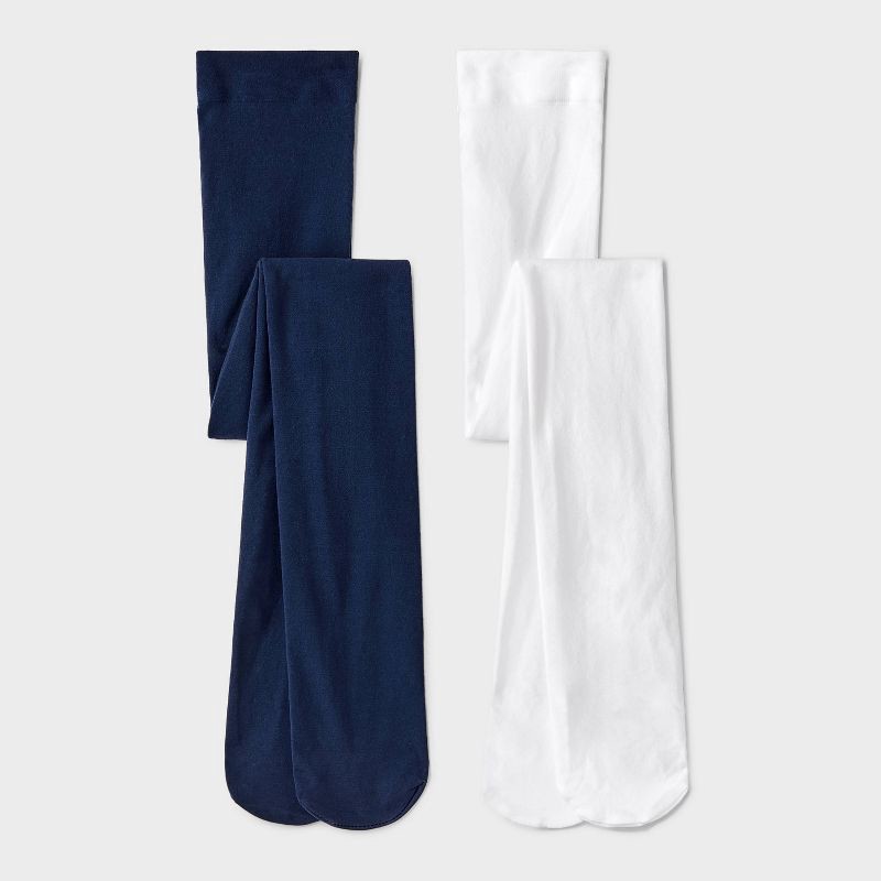 Girls' 2pk Nylon Dance Tights - Cat & Jack™ Navy/Cream L: High Waisted, Opaque, Knit, Elastic Waistband