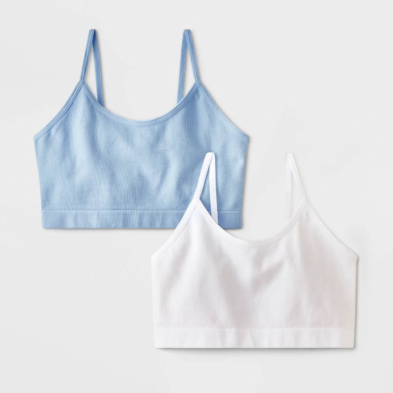 slide 2 of 3, Girls' 2pk Seamless Brami - Cat & Jack™ Blue/White L, 2 ct