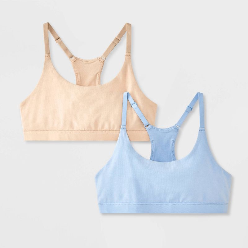 slide 2 of 3, Girls' 2pk Soft Cup Bralette - Cat & Jack™ Beige/Blue XL, 2 ct