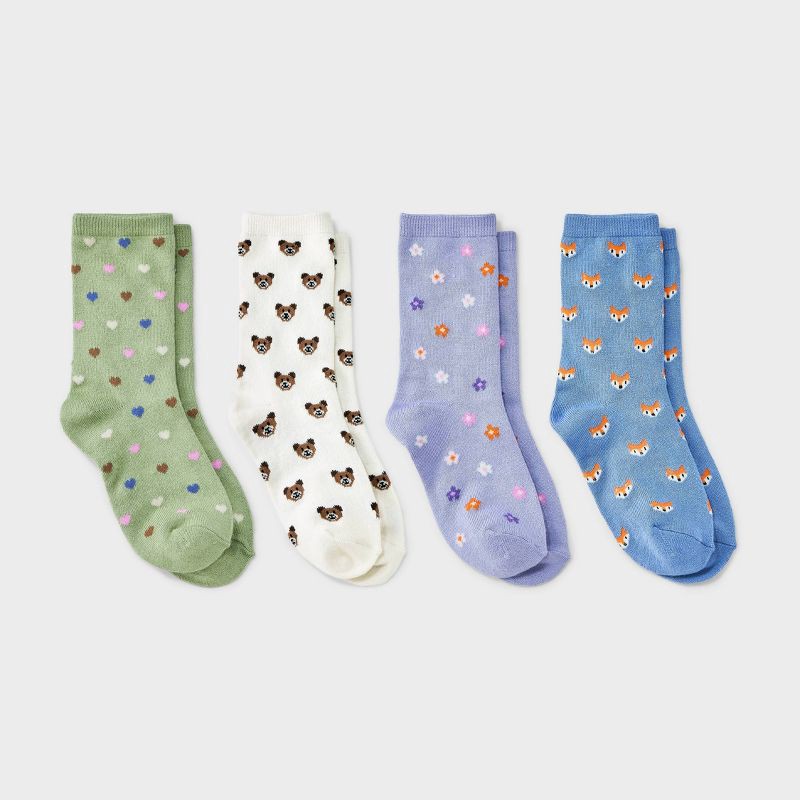 Girls' 4pk Animal and Heart Super Soft Crew Socks - Cat & Jack™ S