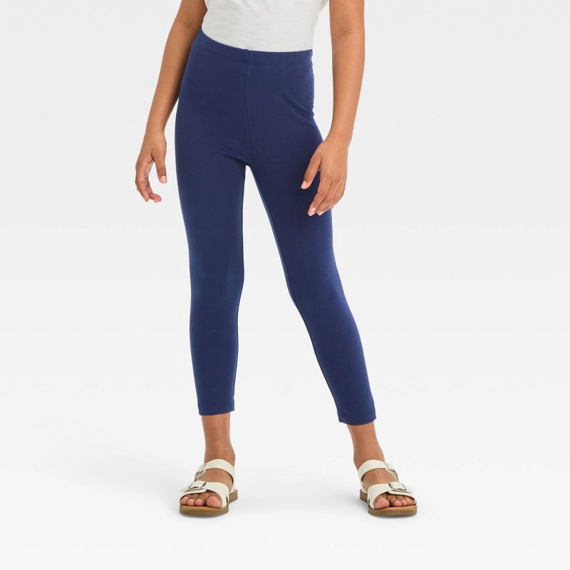 slide 3 of 3, Girls' Capri Leggings - Cat & Jack™ Navy XS: Cotton-Spandex Blend, High Rise, Elastic Waistband, Machine Washable, 1 ct