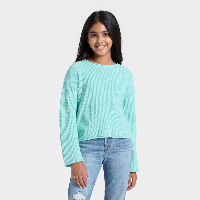 Girls' Chenille Sweater - Cat & Jack™ Light Aqua Blue L