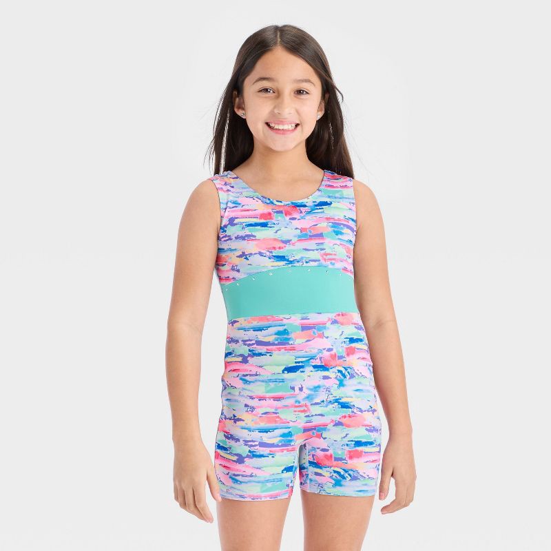 Tap dance to front flips, whatever the activity; they will shine in this Dance Brushstrokes Biketard from Cat & Jack™. Designed in a one-piece silhouette, this sleeveless biketard features a vibrant b…
