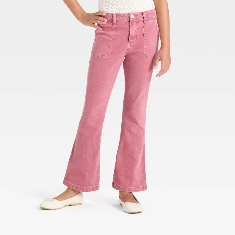 Give their denim collection a fun and comfy update with these Flare Jeans from Cat & Jack™. Made from a fabric blend of cotton, recycled polyester, rayon, and spandex, these mid-rise jeans offer all-d…