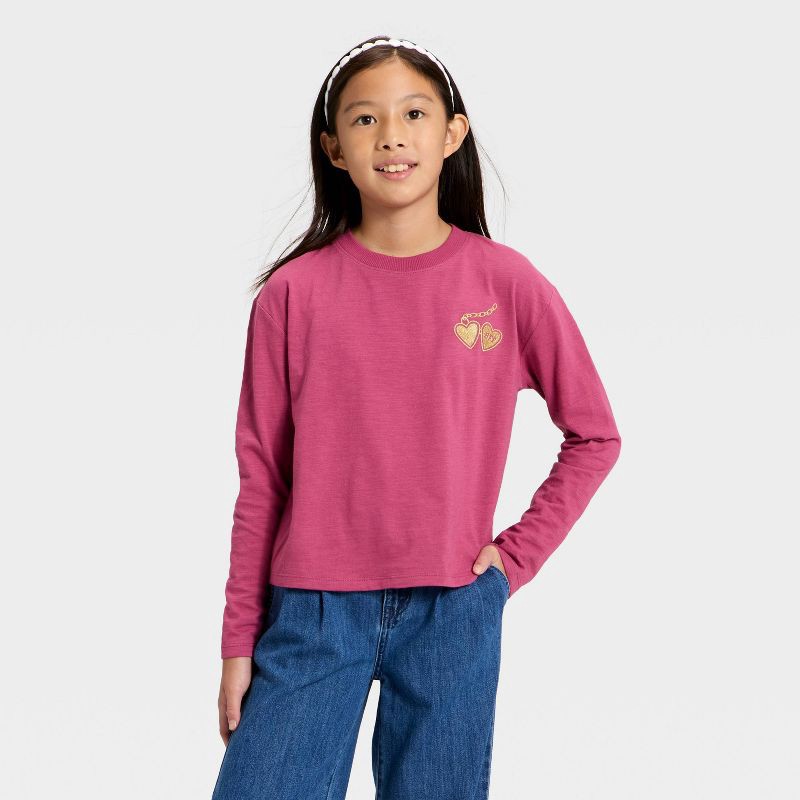 Girls' Long Sleeve BFF Relaxed Fit Graphic T-Shirt - Cat & Jack™ Berry Red M