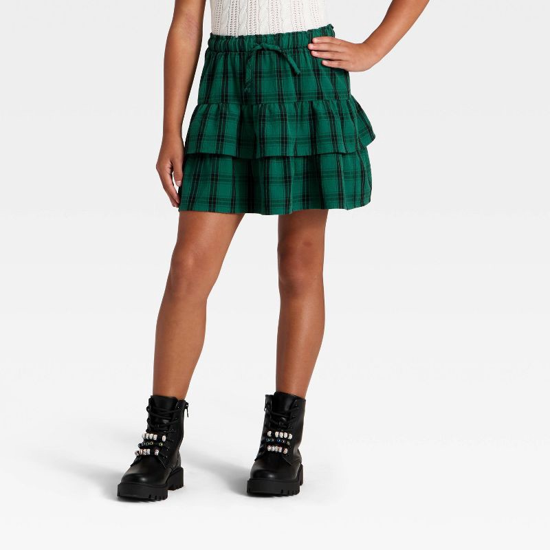 slide 2 of 3, Girls' Plaid Skirt - Cat & Jack™ Dark Jade XL, 1 ct