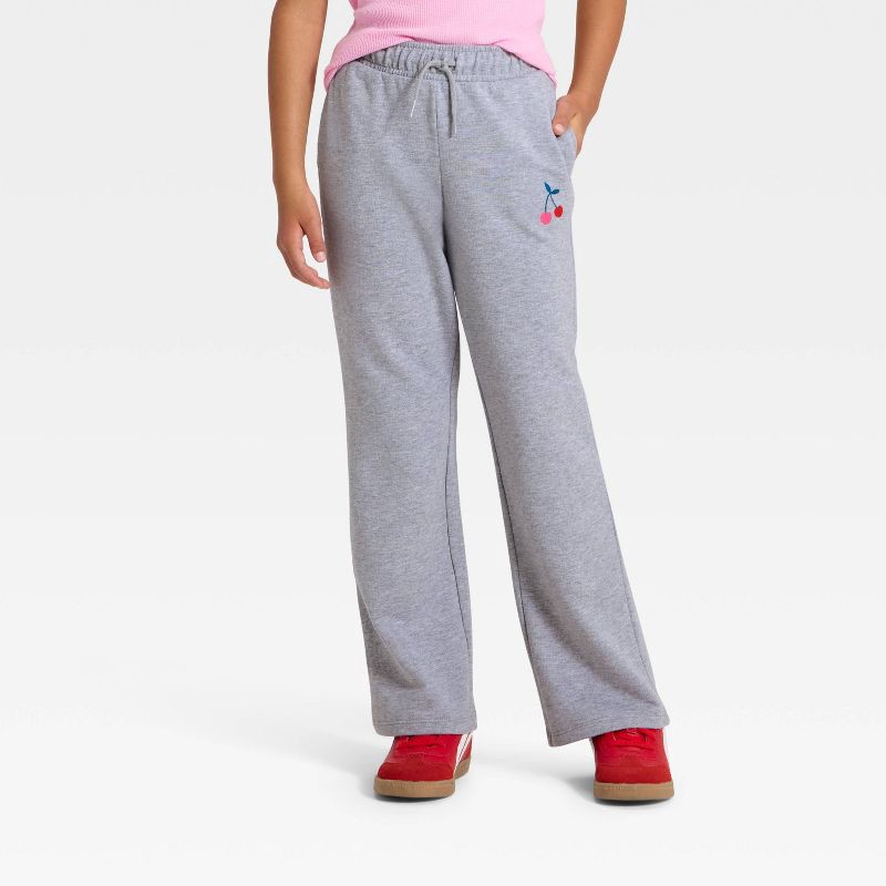 slide 1 of 4, Girls' Pull-On Cherry French Terry Pants - Cat & Jack™ Gray L, 1 ct