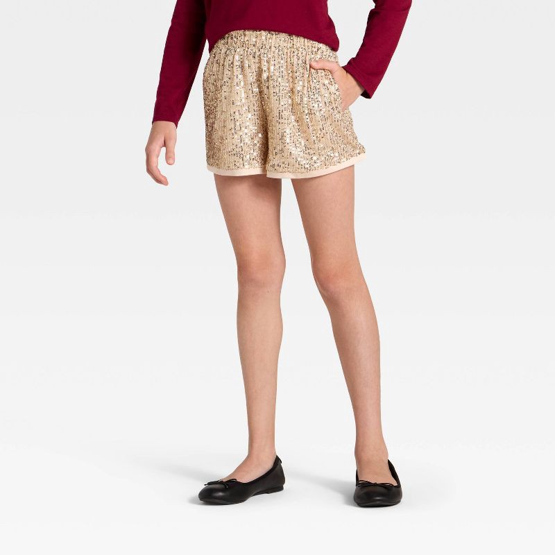 Girls' Pull-On Sequin Shorts - Cat & Jack™ Gold M