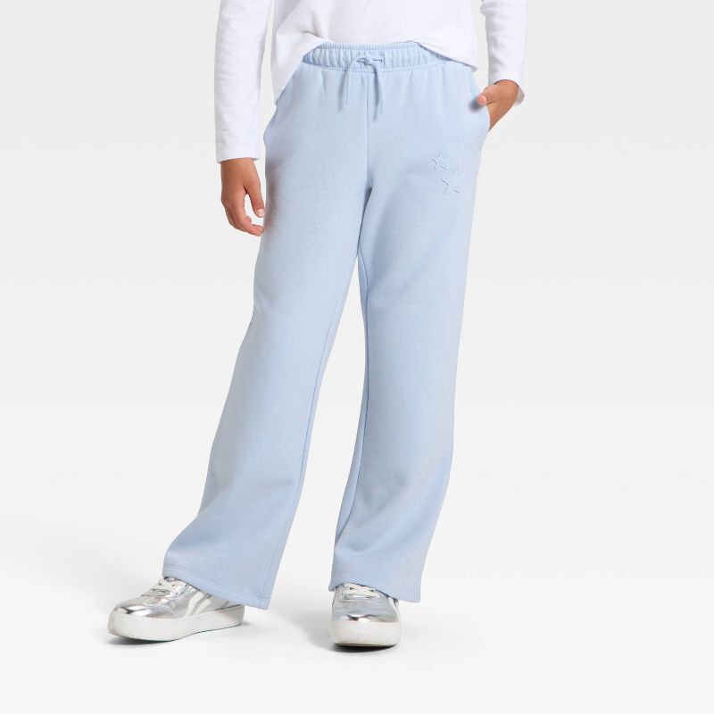 slide 4 of 4, Girls' Pull-On Star Fleece Pants - Cat & Jack™ Light Blue XL, 1 ct
