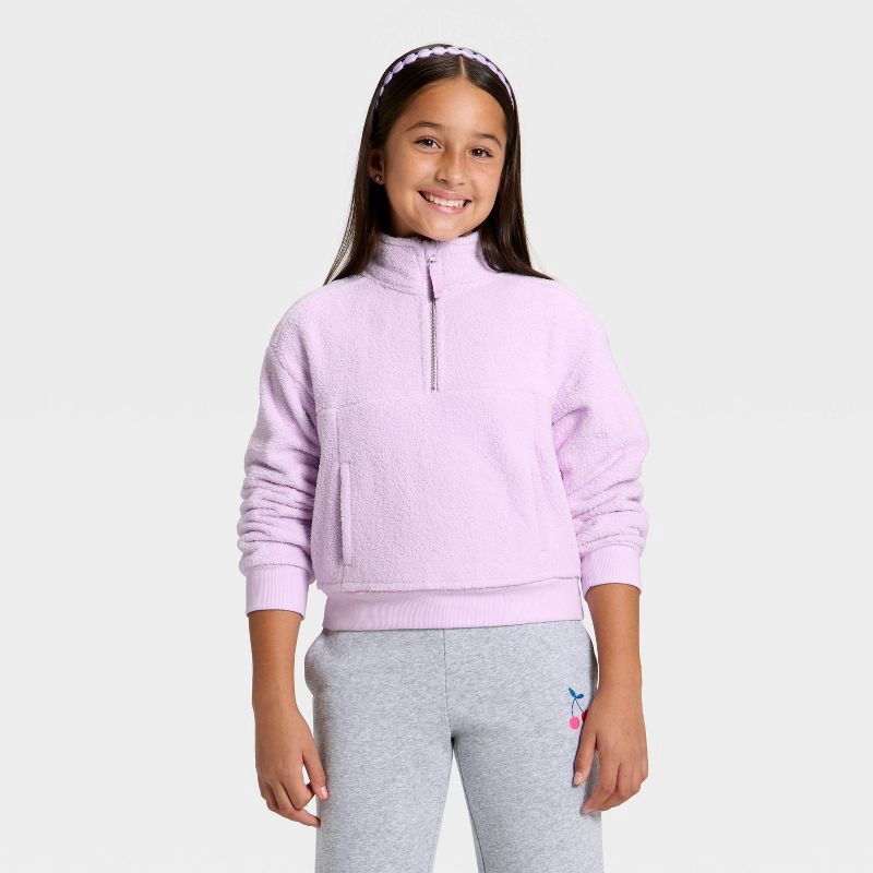 slide 1 of 3, Girls' Reverse Fleece Quarter Zip Pullover Sweatshirt - Cat & Jack™ Violet M, 1 ct
