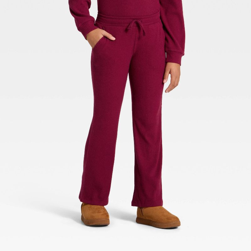 Elevate their smart-casual looks with these Ribbed Flare Pants from Cat & Jack ™. Made from a fabric blend of recycled polyester, rayon, and spandex, these mid-rise pants move and stretch with them. T…