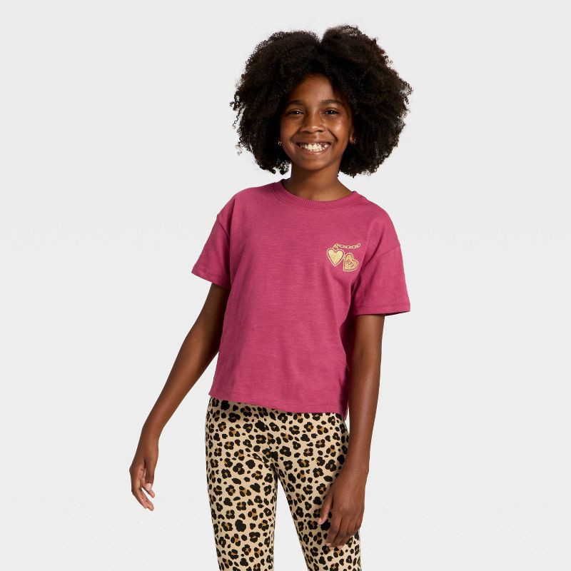 Girls' Short Sleeve BFF Relaxed Fit Graphic T-Shirt - Cat & Jack™ Berry Red XL