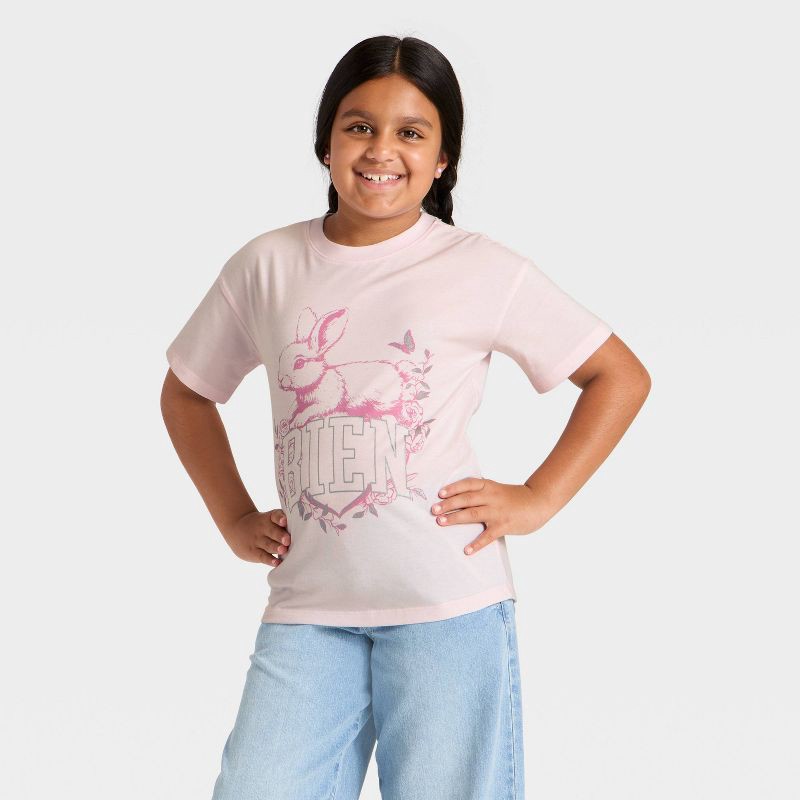 Add whimsical style to your kid's closet with the Short-Sleeve Oversized 'Bien Bunny' Graphic T-Shirt from Cat & Jack™. This light pink T-shirt features graphics of a bunny along with flowers and the …