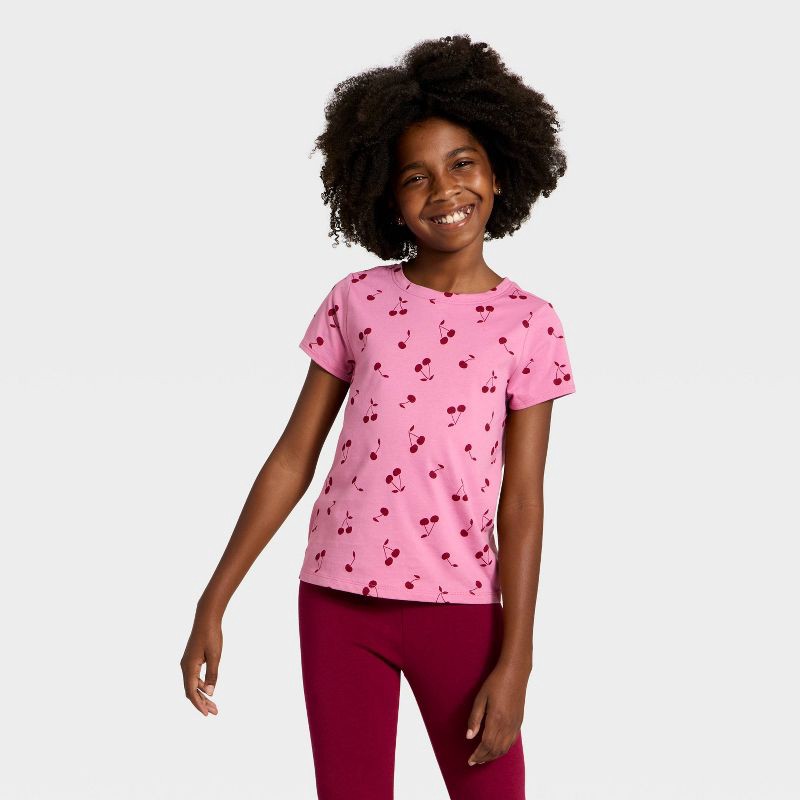 Girls' Short Sleeve Cherries Printed Classic Fit T-Shirt - Cat & Jack™ Cherry Pink S