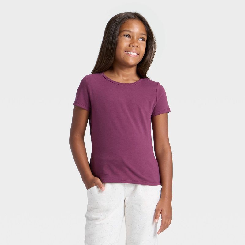 Girls' Short Sleeve Fitted T-Shirt - Cat & Jack™ Burgundy L
