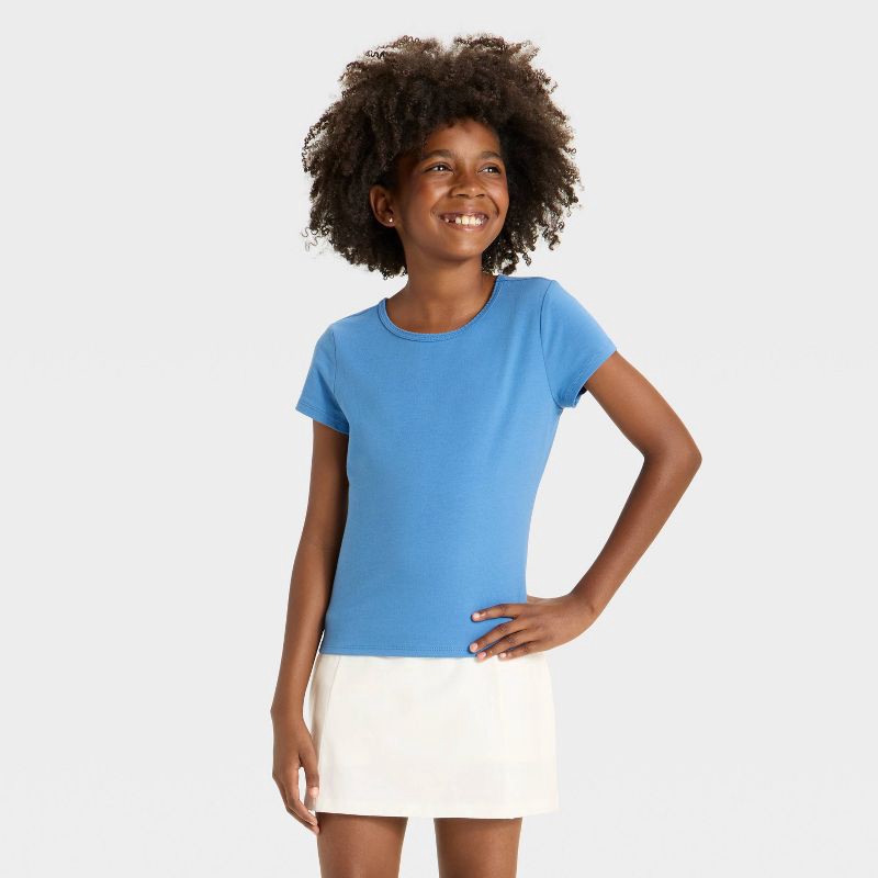 slide 2 of 3, Girls' Short Sleeve Fitted T-Shirt - Cat & Jack™ Steel Blue M, 1 ct