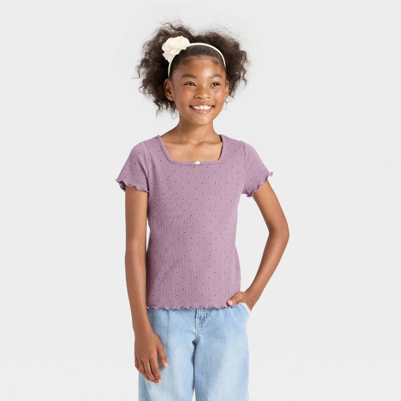 Girls' Short Sleeve Rib-Knit Polka Dots T-Shirt - Cat & Jack™ Purple XS
