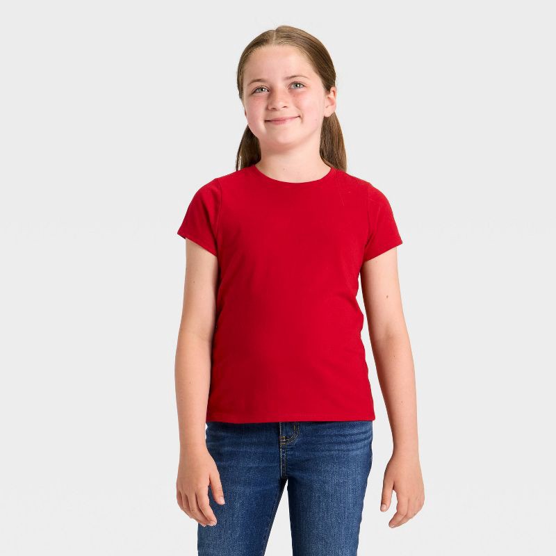 Girls' Short Sleeve Solid T-Shirt - Cat & Jack™ Dark Red L