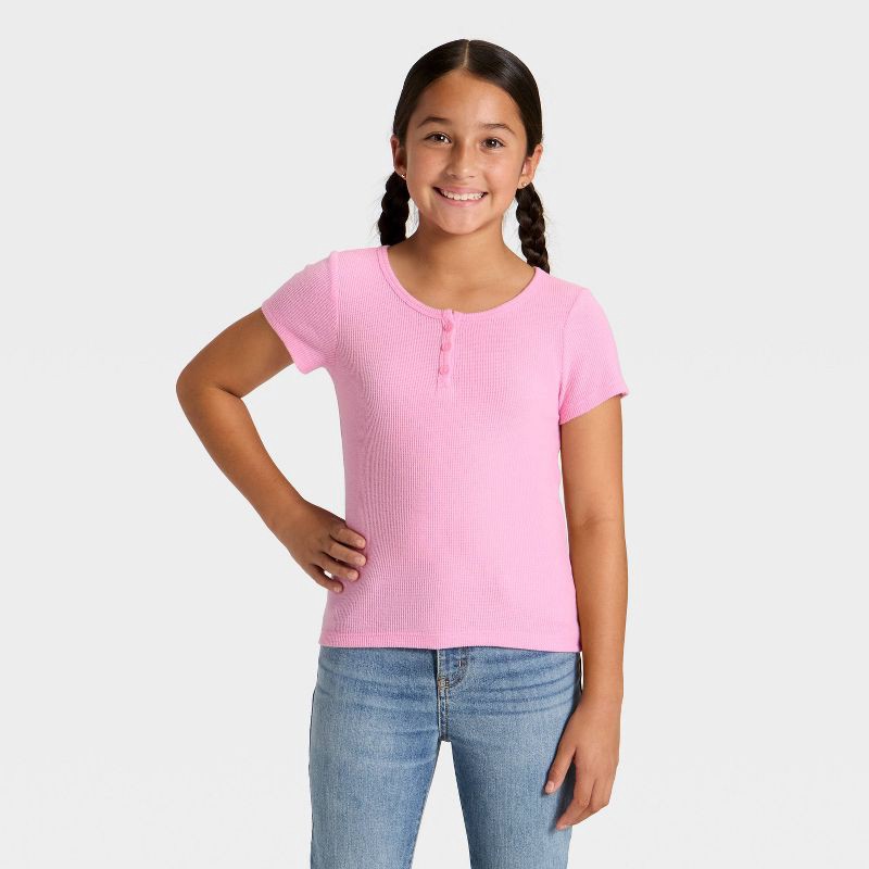 Girls' Short Sleeve Waffle Knit Henley T-Shirt - Cat & Jack™ Rose Pink M
