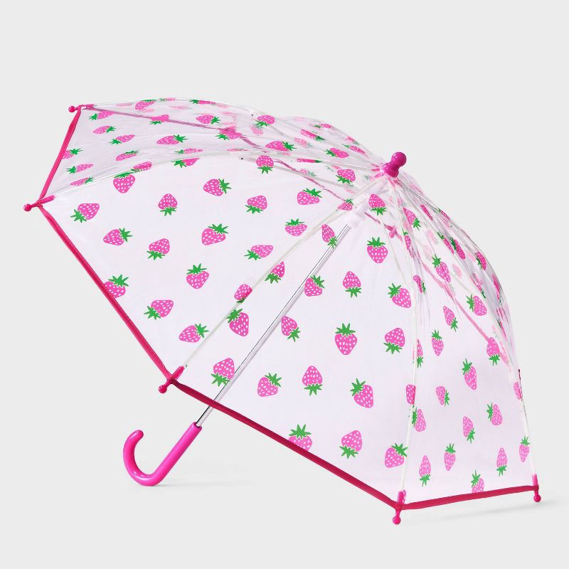 Brighten up rainy days with the Girls' Strawberry Stick Umbrella - Cat & Jack™ Clear. This fun and colorful umbrella features a vibrant strawberry prints, perfect for adding a splash of color to any o…