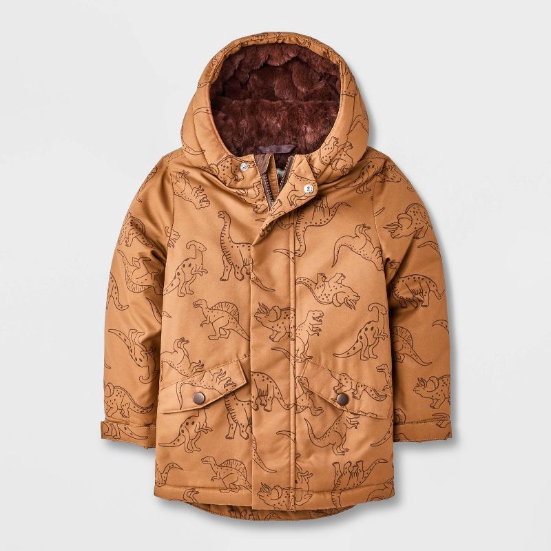 Toddler Boys' Dino Printed Hooded Parka Jacket - Cat & Jack™ Brown 2T