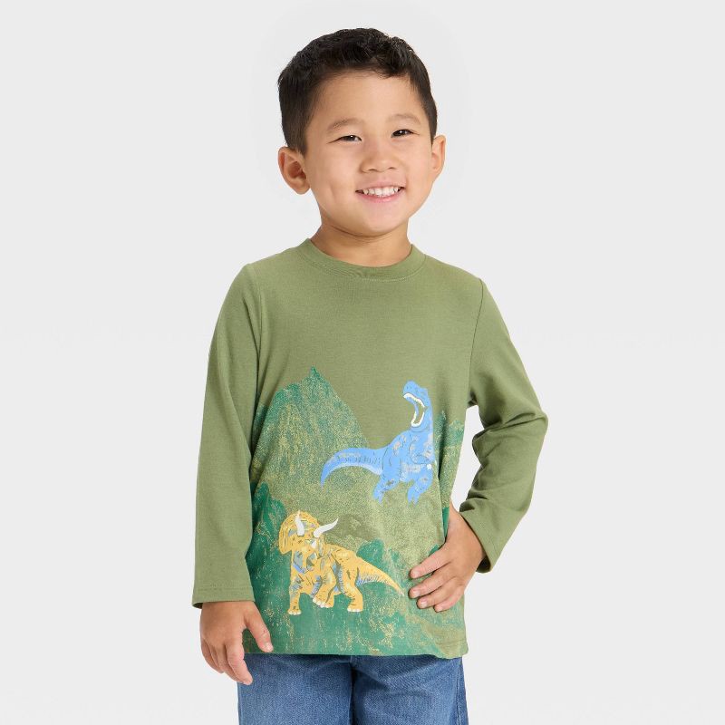 slide 2 of 4, Toddler Boys' Long Sleeve Dinosaur Graphic T-Shirt - Cat & Jack™ Green 18M, 1 ct