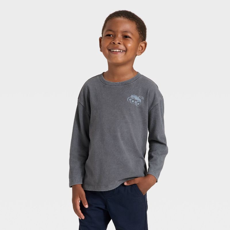 slide 2 of 4, Toddler Boys' Long Sleeve Oversized T-Shirt - Cat & Jack™ Black 12M, 1 ct