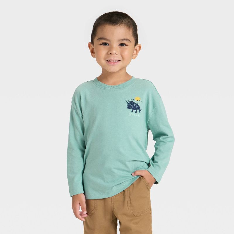 Toddler Boys' Long Sleeve Oversized T-Shirt - Cat & Jack™ Green 3T