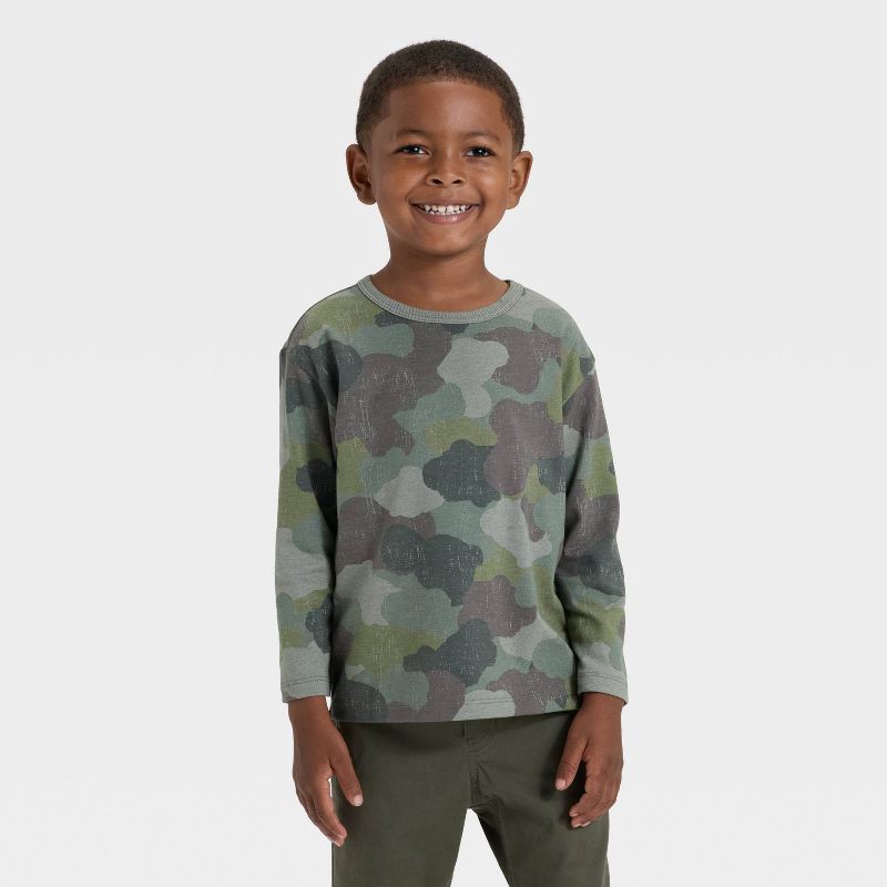 Toddler Boys' Long Sleeve Relaxed T-Shirt - Cat & Jack™ Olive Green 12M