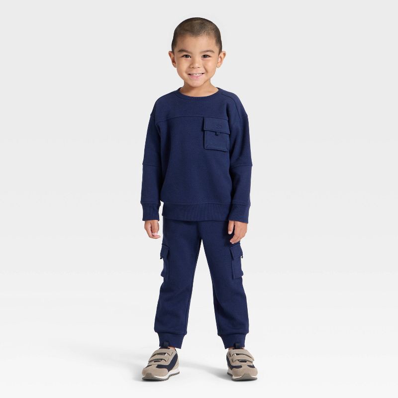 slide 1 of 4, Toddler Boys' Pocket Crewneck Sweatshirt and Joggers Set - Cat & Jack™ Navy Blue 12M, 1 ct
