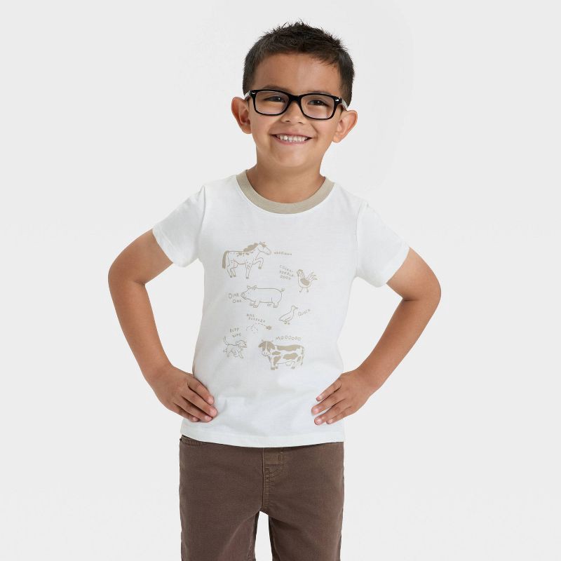Toddler Boys' Short Sleeve Farm Animals Graphic T-Shirt - Cat & Jack™ Off-White 2T
