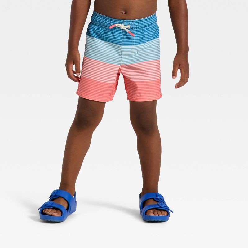 slide 1 of 3, Toddler Boys' Striped Swim Trunks - Cat & Jack™ Blue/ Pink 3T, 1 ct