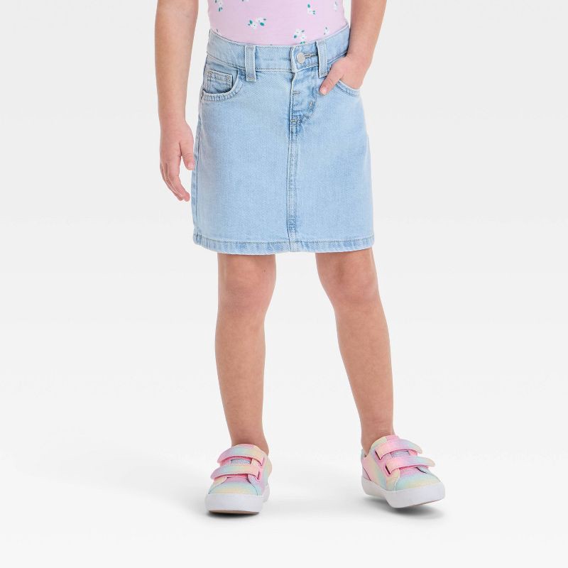 This Classic Skirt from Cat & Jack™ is a perfect choice for a day of adventure and fun. Made from a fabric blend of cotton, recycled cotton and elastane for easy movement, this mid-rise denim skirt fe…