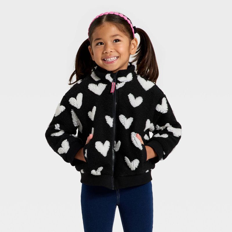 Get your little one ready for outdoor fun in this Cozy Fleece Jacket from Cat & Jack™. Made from 100% recycled polyester fleece fabric, this long-sleeve jacket features allover graphics of hearts for …