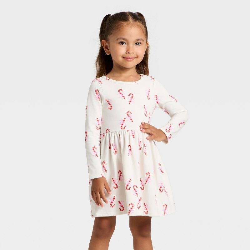 This Long-Sleeve Dress from Cat & Jack™ makes a cool addition to your toddler's everyday wardrobe. Made of cotton-recycled polyester blend fabric, this long-sleeve dress provides cozy comfort. This dr…