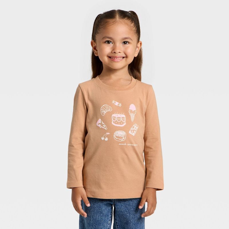 Fill their day with loads of sweetness with this Long-Sleeve Graphic T-Shirt from Cat & Jack™. Made from cotton-recycled polyester blend jersey fabric in light brown and featuring a tagless design, th…