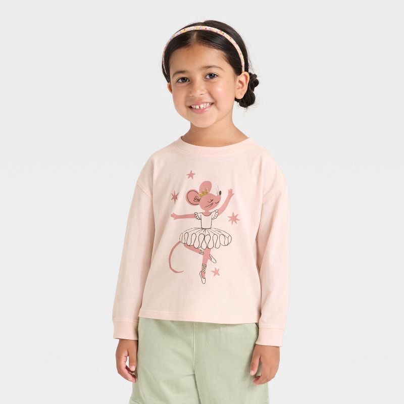 slide 1 of 4, Toddler Girls' Long Sleeve Relaxed T-Shirt - Cat & Jack™ Peach Orange 18M, 1 ct