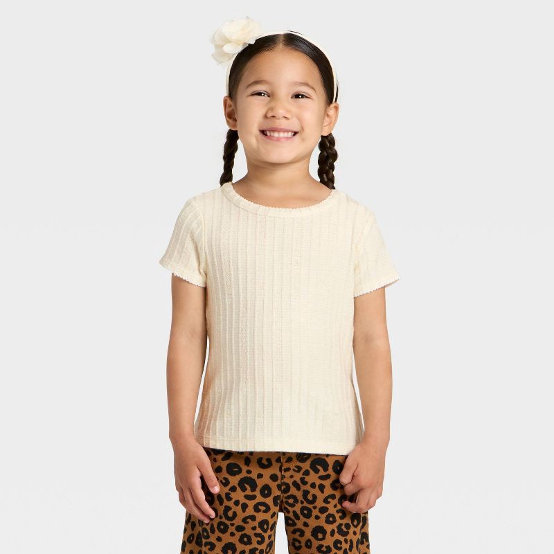 Toddler Girls' Pointelle Short Sleeve T-Shirt - Cat & Jack™ Cream 5T