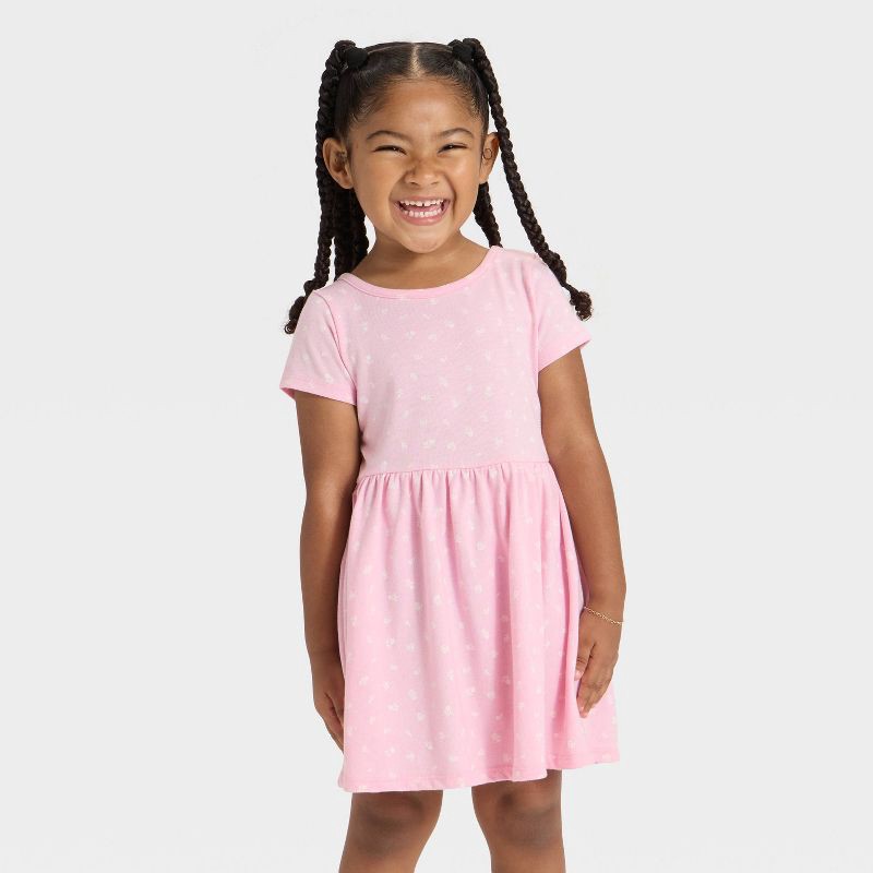 Toddler Girls' Short Sleeve Flowers Dress - Cat & Jack™ Pink 18M