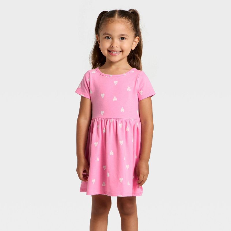 Refresh their everyday wardrobe with this Short-Sleeve Printed Dress from Cat & Jack™. Made from cotton-recycled polyester blend fabric, this short-sleeve dress offers a comfortable fit. It's fashione…